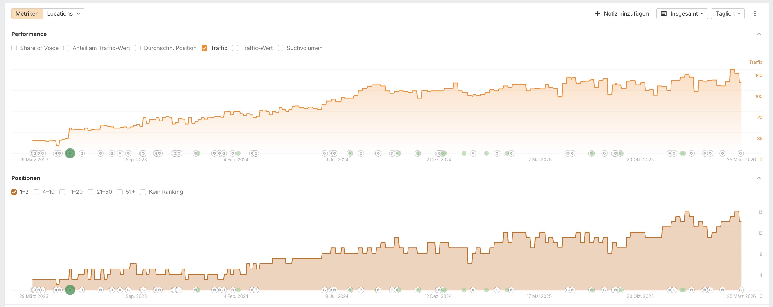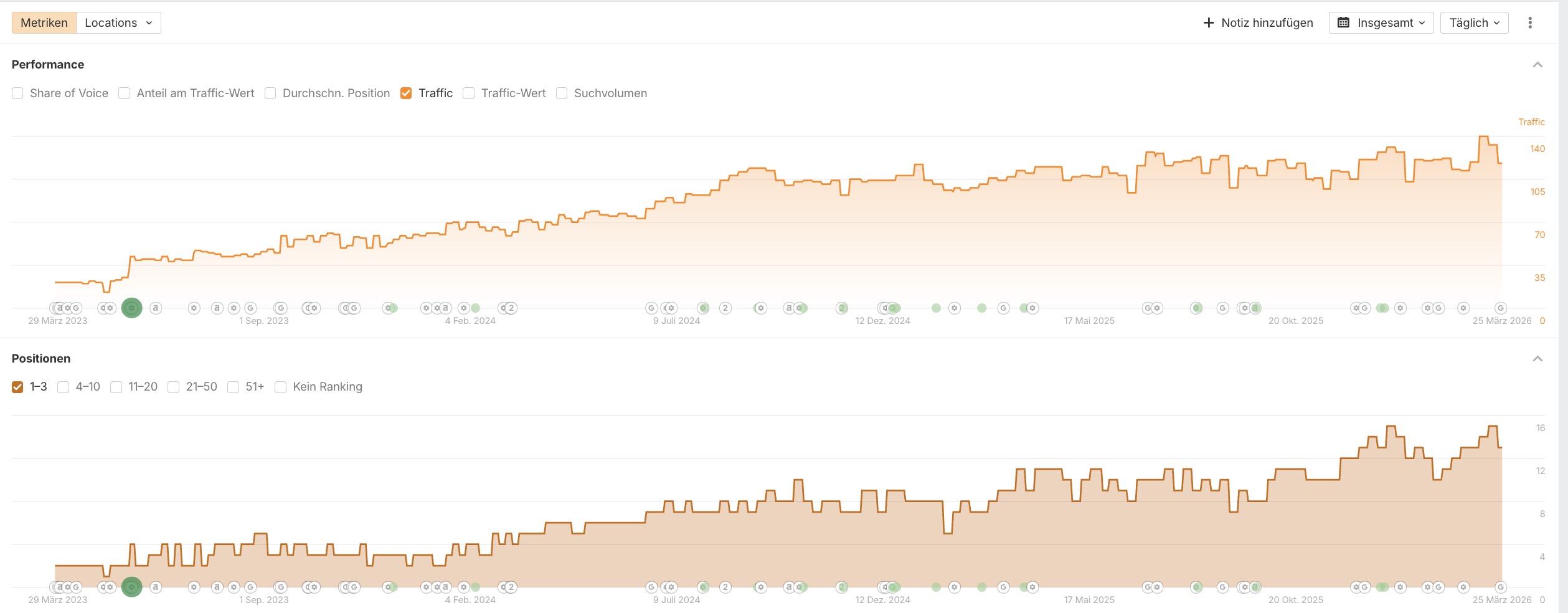 | Organischer Traffic | Von ca. 35 auf Spitzenwerte von über 140 | +300% Wachstum |