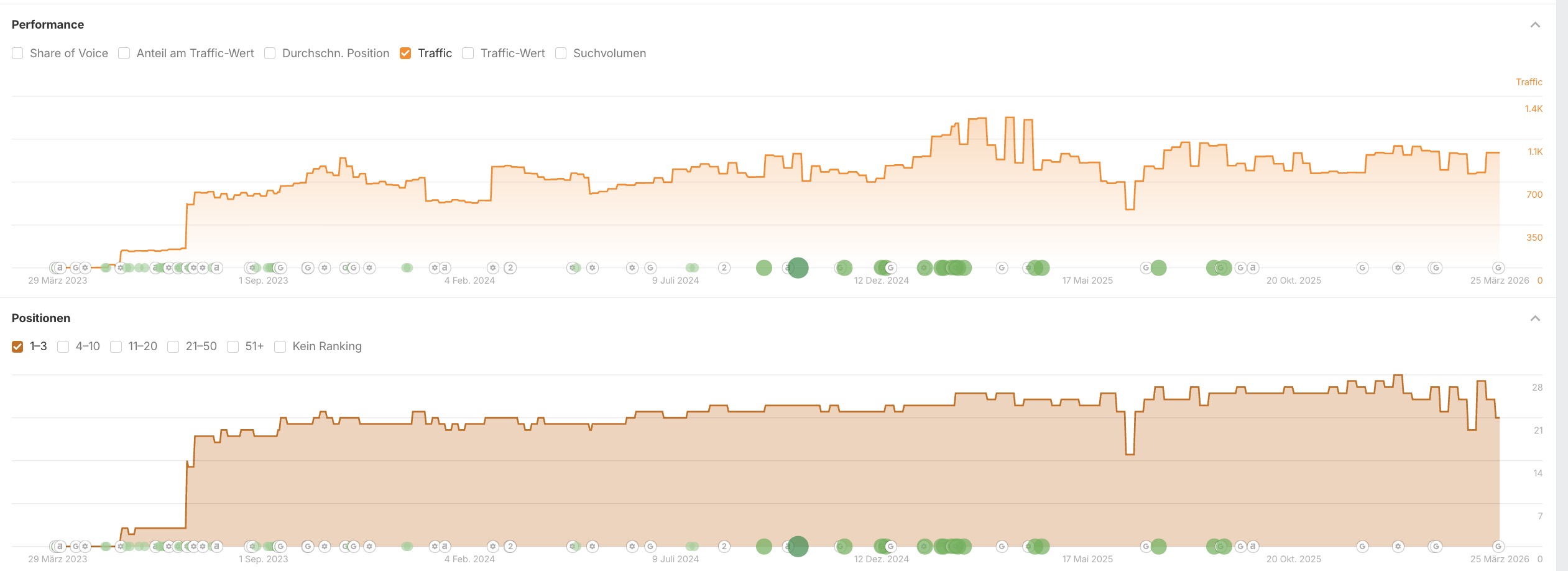 | Organischer Traffic | Steigerung von ~35 auf Spitzenwerte über 140 Einheiten | +300% |